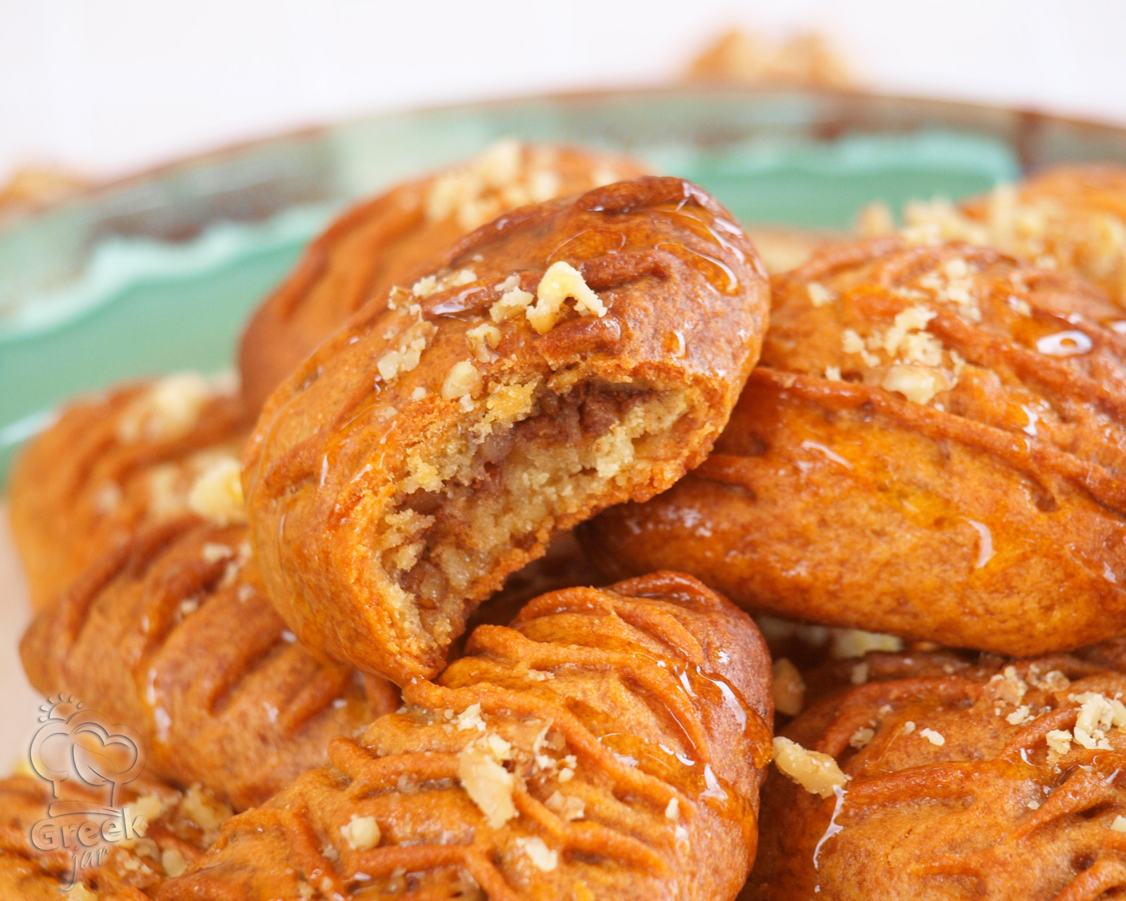- Μόλις βγουν τα βουτάμε στο κρύο σιρόπι, τα γυρίζουμε συνεχώς μέσα στο σιρόπι για περίπου 1' και τα μεταφέρουμε με τρυπητή κουτάλα σε αεροστεγές δοχείο. Αμέσως τα πασπαλίζουμε με ψιλοκομμένα καρύδια και αφού κρυώσουν κλείνουμε το δοχείο μας.